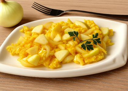 Jajecznica na smalcu z cebulką i jabłkiem – przepis na pożywne i zdrowe śniadanie